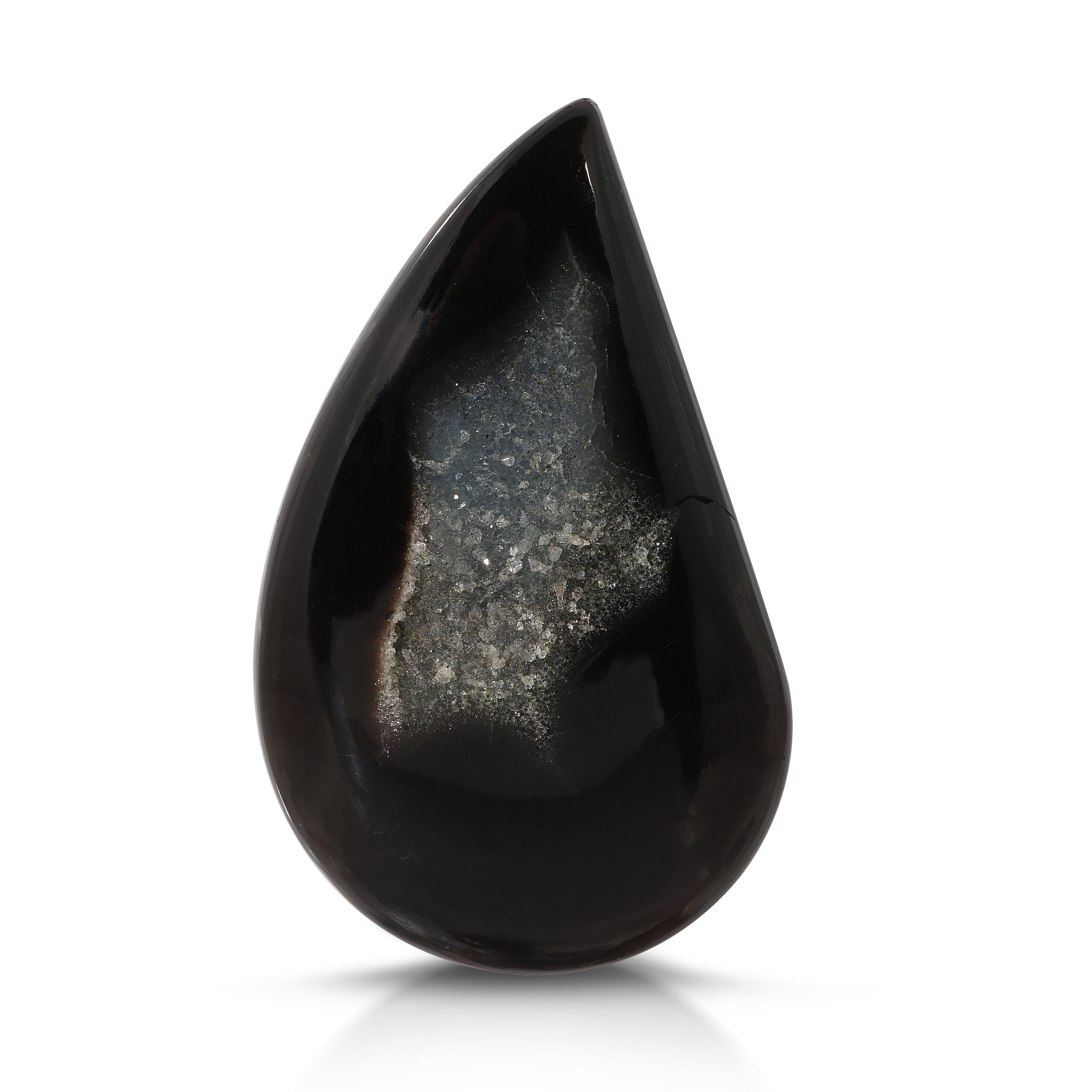 Black Druzy Agate, free-form shape gemstone. Sourced from, Brazil. Ideal for a pendant design. Black Druzy Quartz dimensions, 33.65mm x 20.58mm.